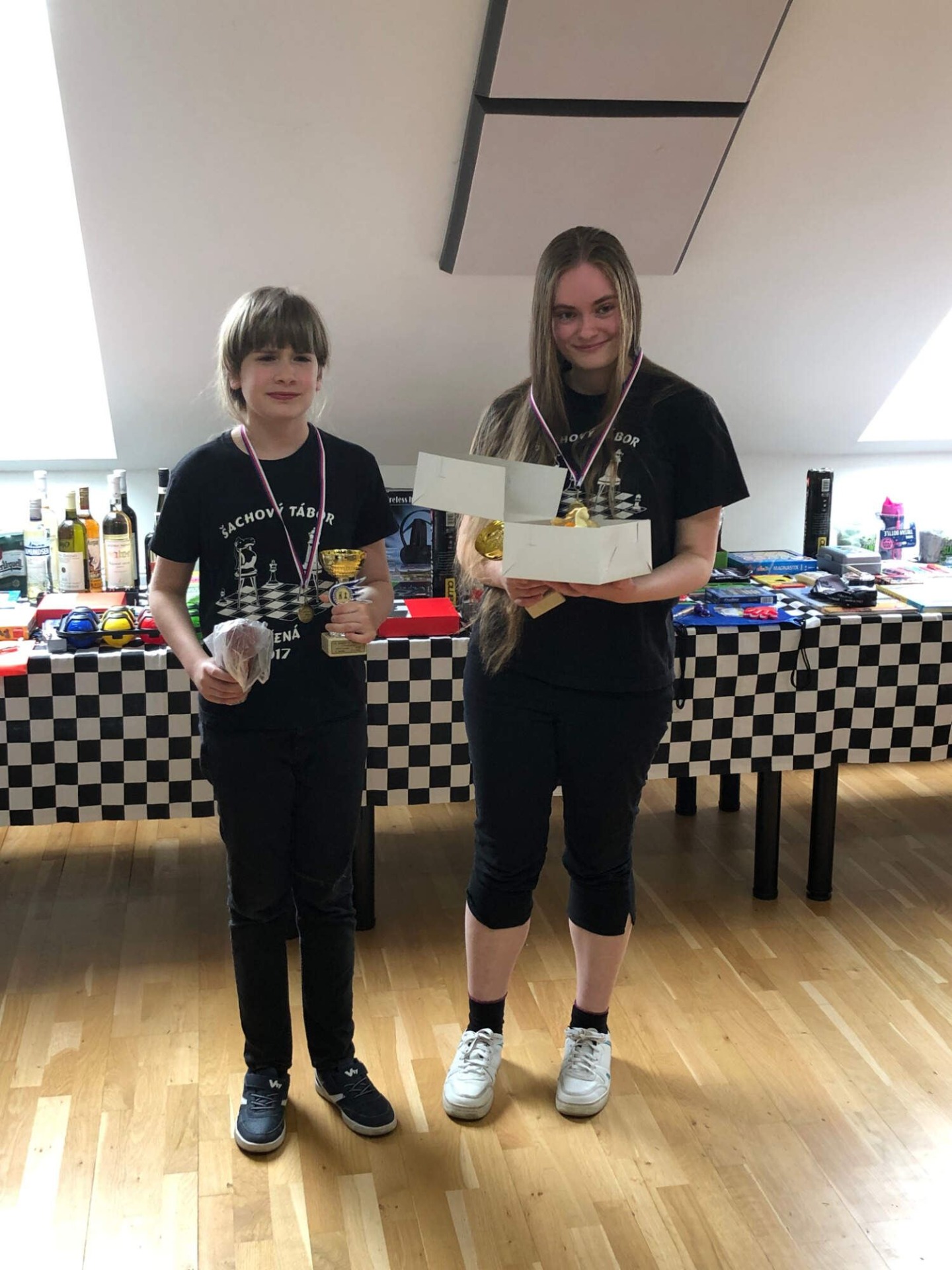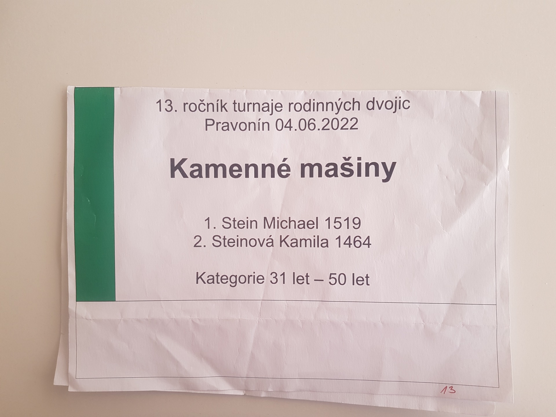 Zatím se s bráchou máme hodně rádi. Turnaj rodinných dvojic pro nás totiž dopadl skvěle, obsadili jsme celkové desáté místo, vyhráli kategorii 31 let - 50 let a udělali radost rodičům, neboť jsme kromě medailí a pohárů obdrželi ještě salám a dortík. Obvykle se s jídlem moc nedělím, ale tentokrát jsem učinila výjimku a rozdělila se. Myslím na své nejbližší :D